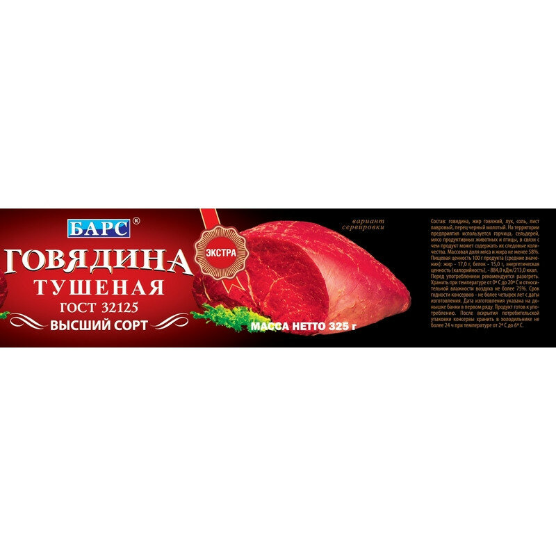 Говядина тушеная экстра, высший сорт, ГОСТ, Барс, 20 шт. по 325 г