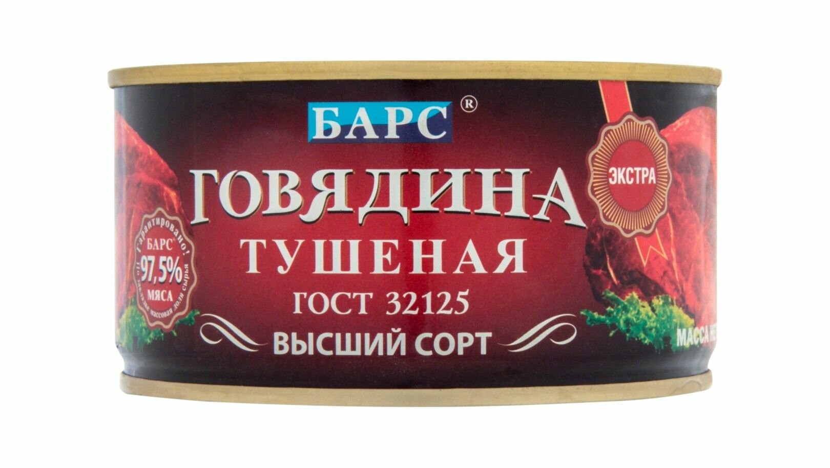 Говядина тушеная экстра, высший сорт, ГОСТ, Барс, 1 шт. по 325 г