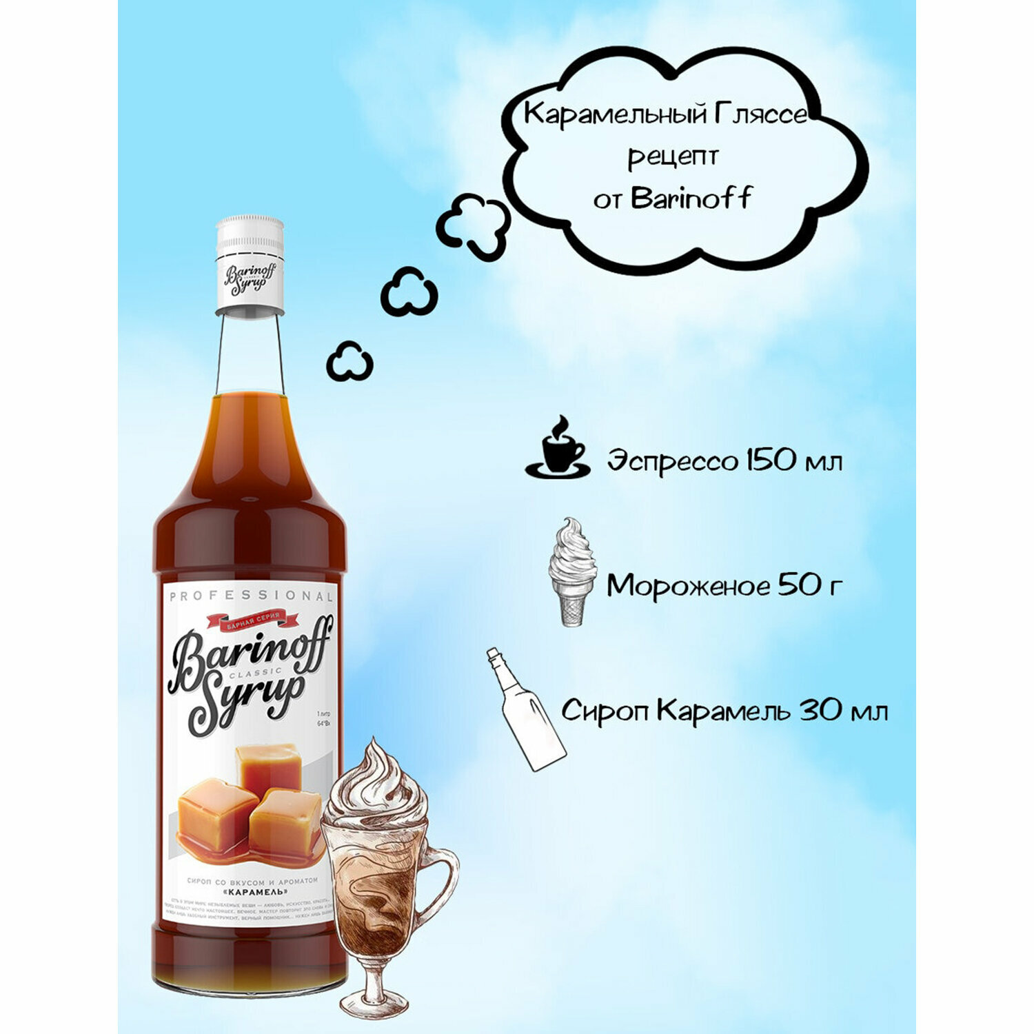 Сироп Barinoff Карамель, для кофе и коктейлей, 1 л