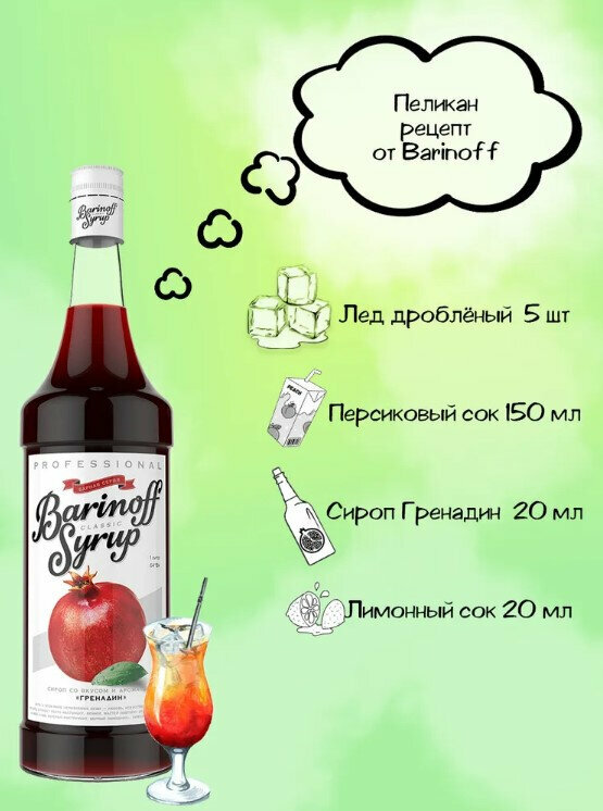 Сироп Barinoff Гренадин (для кофе, коктейлей, десертов, лимонада и мороженого), 1л