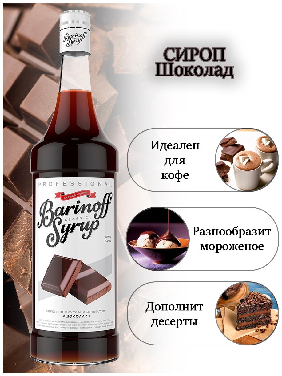 Сироп Barinoff Шоколад (для кофе, коктейлей, десертов, лимонада и мороженого), 1л