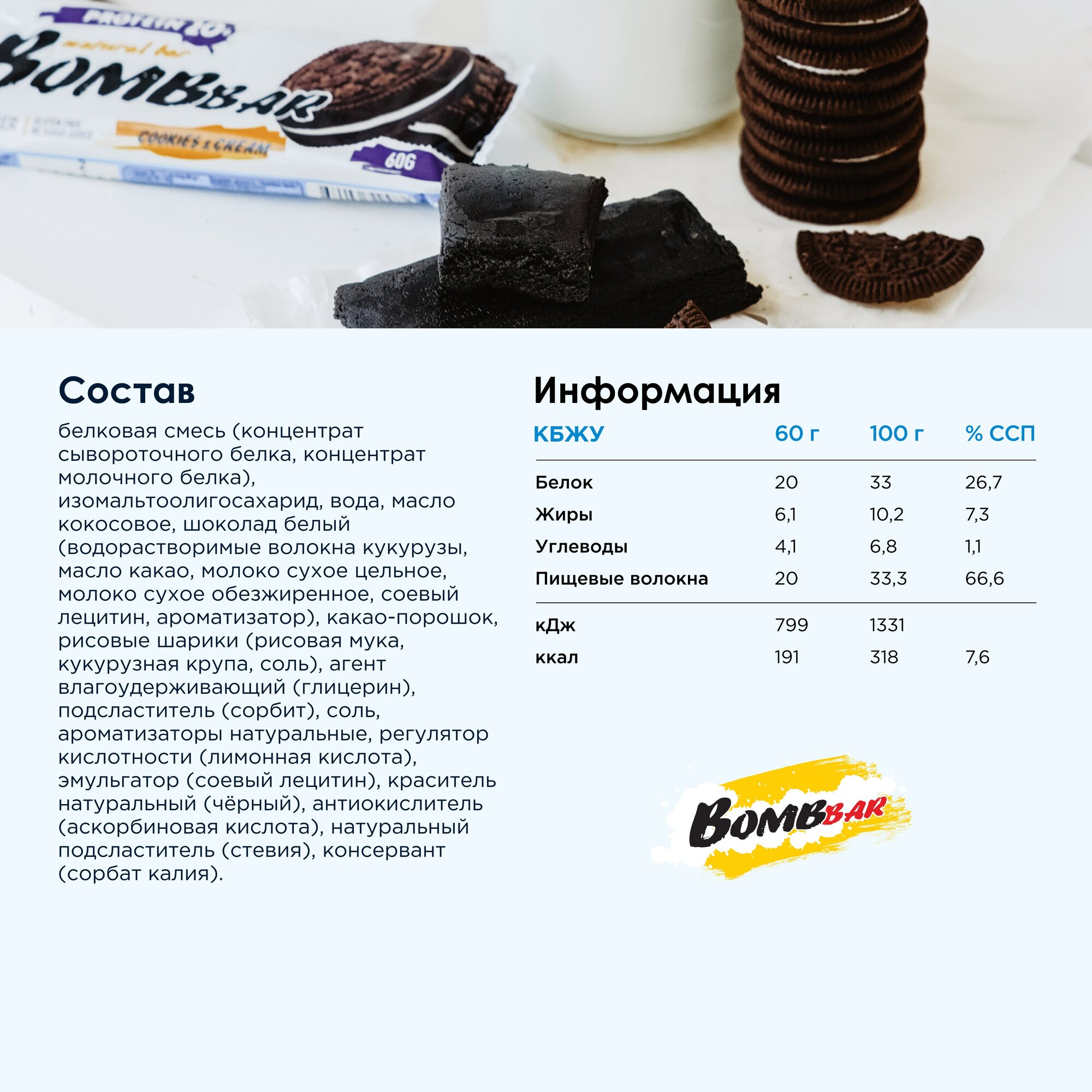 СохранитьПротеиновый батончик Bombbar печенье-крем, 12 шт 60 г интересное: