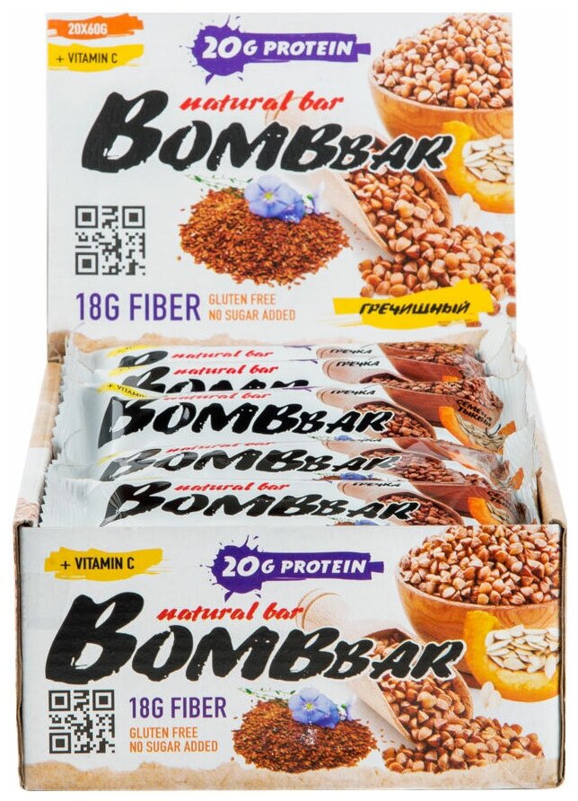 Купить Протеиновый батончик Bombbar Protein Bar 20 x 60 г, Гречишный