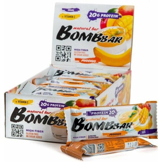Протеиновый батончик Bombbar без сахара, Пудинг банан-манго, 60г х 12 шт.