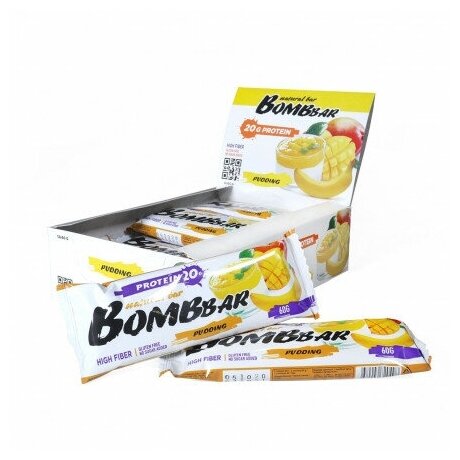 Протеиновый батончик Bombbar без сахара, Пудинг банан-манго, 60г х 12 шт.