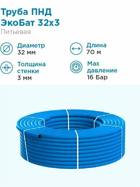 Ниже Вы можете прочитать отзывы на ЭкоБат Труба ПНД Экобат 32х3 для водоснабжения бухта 70 метров, ознакомится с подробными характеристиками, посмотреть интересные обзоры и фотографии на ЭкоБат Труба ПНД Экобат 32х3 для водоснабжения бухта 70 метров.