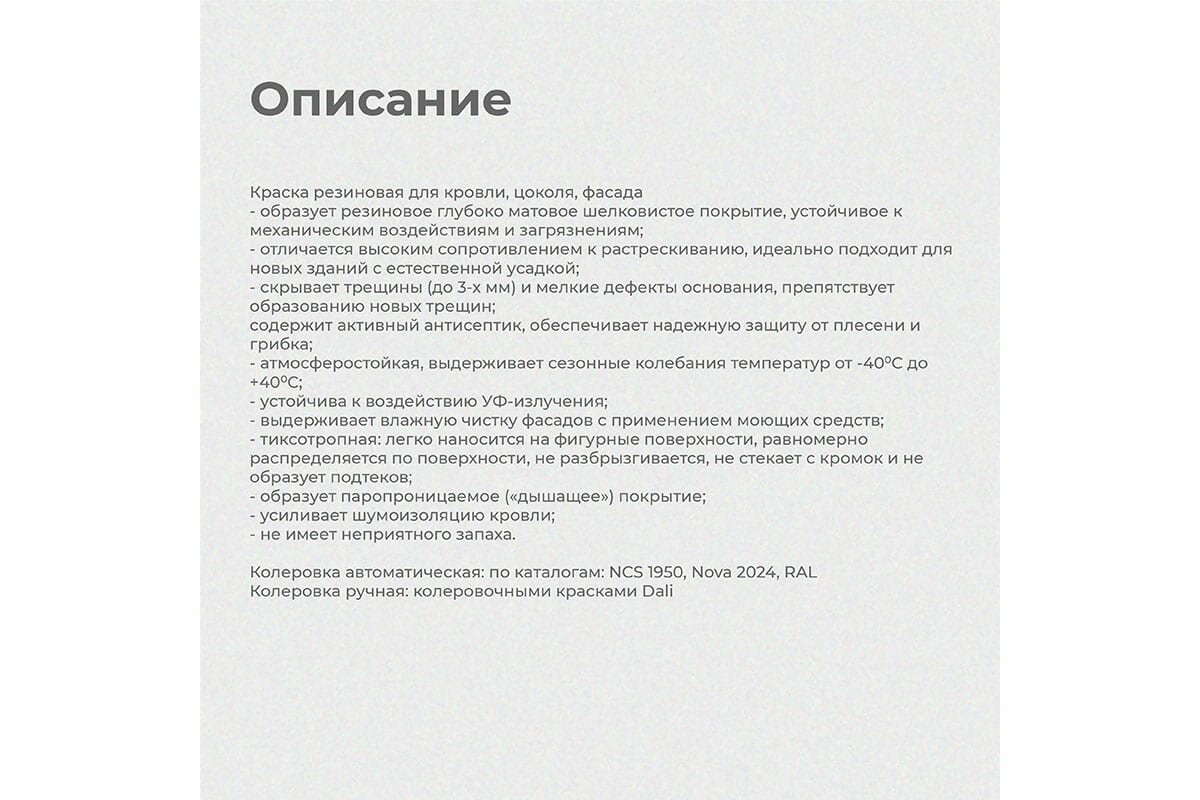 СохранитьКраска резиновая Dali глубокоматовая (12кг) серый интересное: