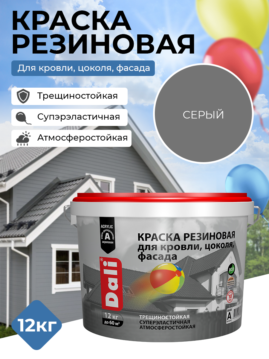 Краска резиновая DALI для кровли, цоколя, фасада, серая 12 кг