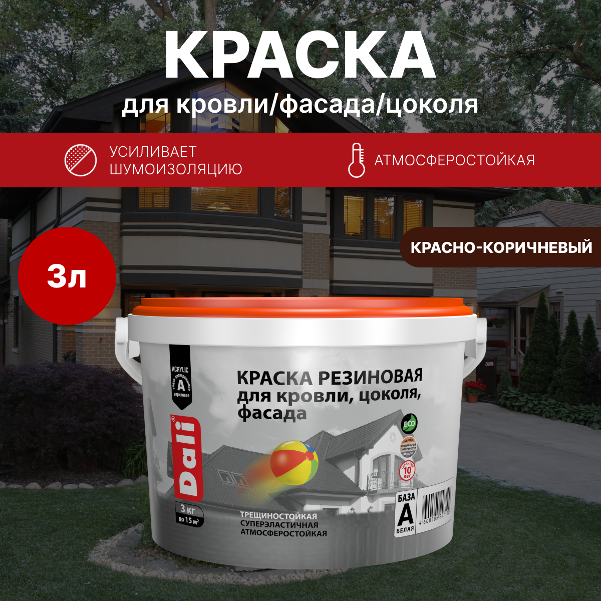 Краска акриловая DALI резиновая для кровли, цоколя, фасада влагостойкая моющаяся глубокоматовая красно-коричневый 3 кг