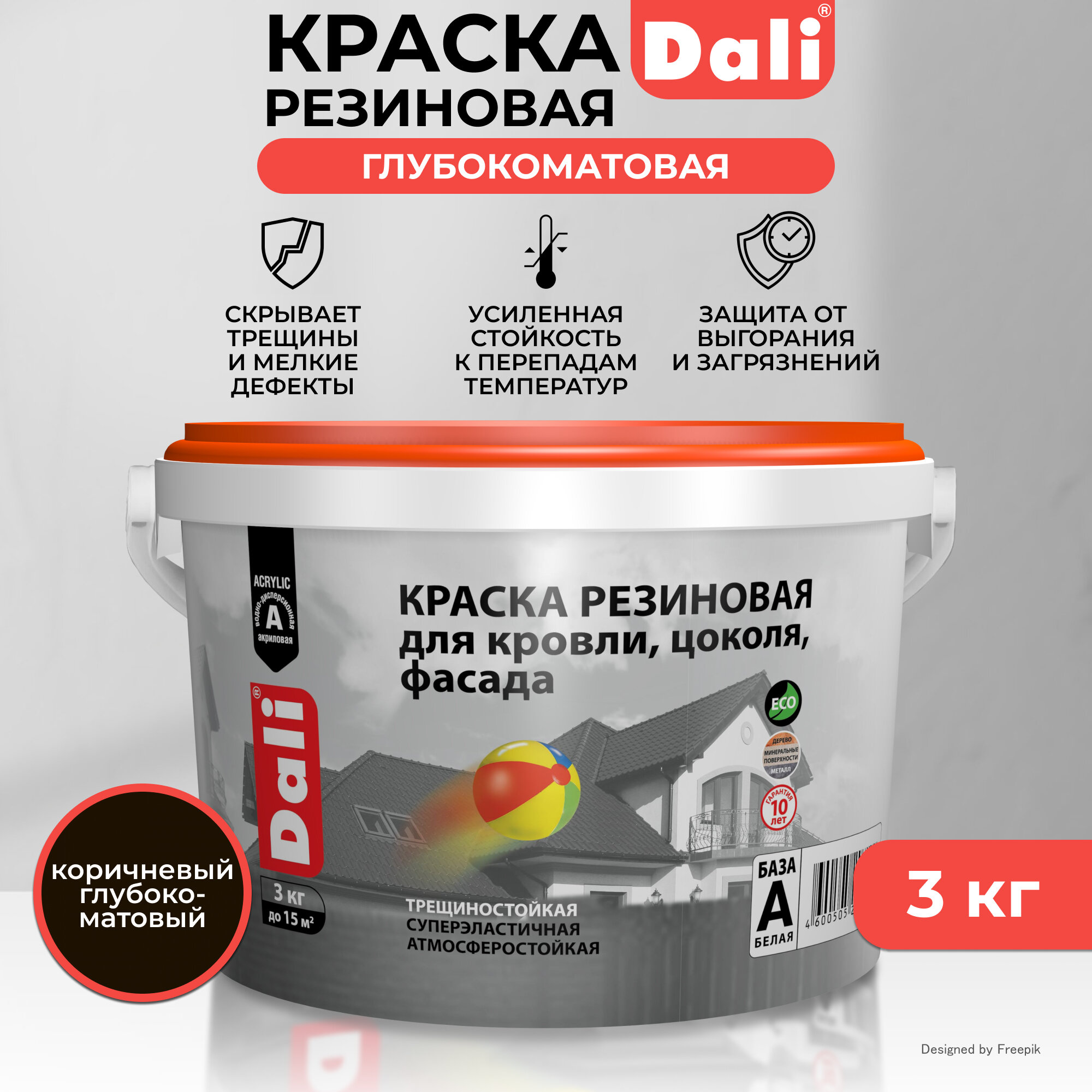 Краска акриловая DALI резиновая для кровли, цоколя, фасада влагостойкая моющаяся глубокоматовая красно-коричневый 3 кг