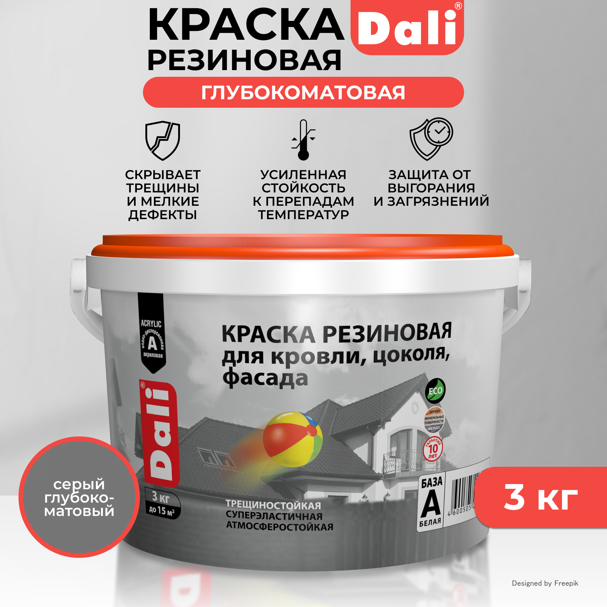 Краска резиновая Dali, глубокоматовая, 3 кг, RAL 7024, серый графит