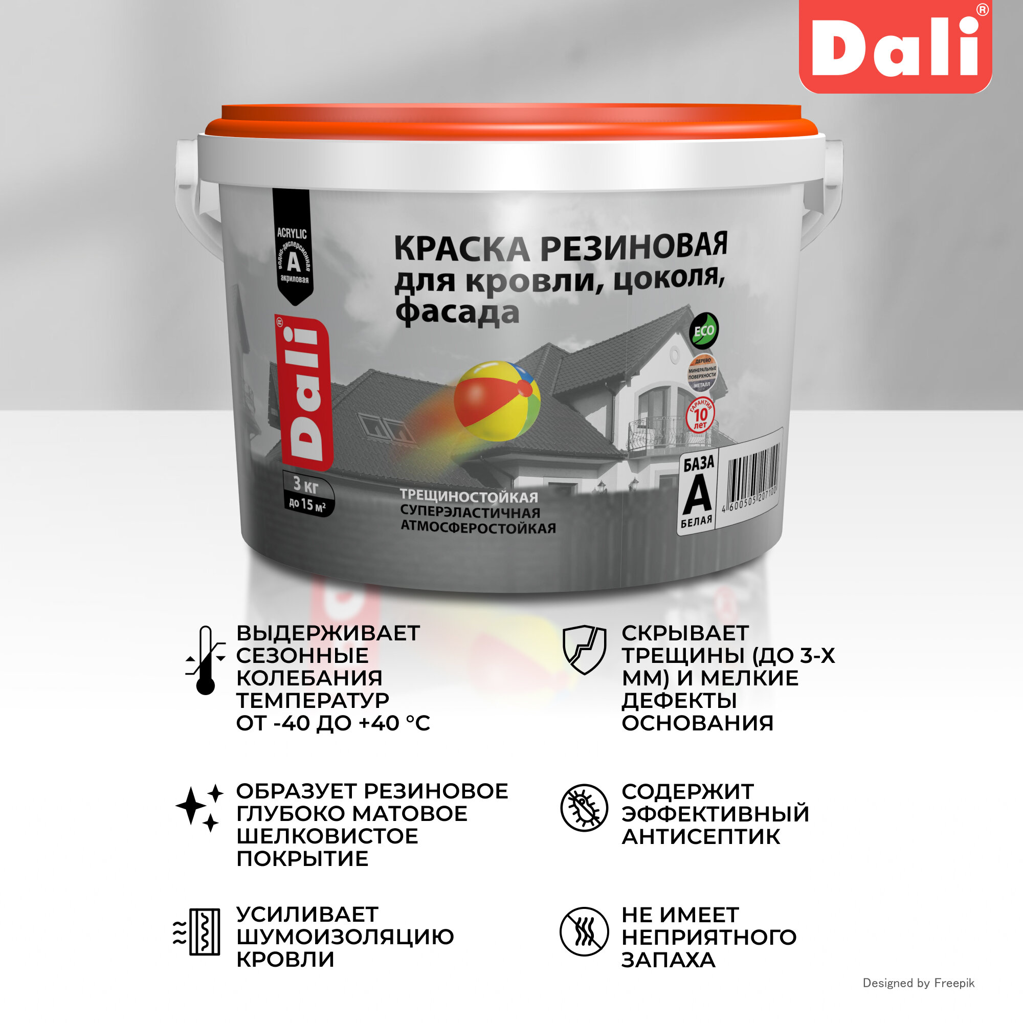 Dali / Дали краска резиновая трещиностойкая акриловая белая, база А 6 кг