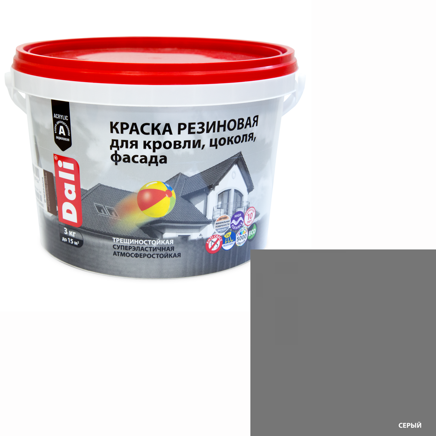 DALI краска для кровли, цоколя, фасада, акриловая, резиновая, трещиностойкая, серый графит (6 кг)