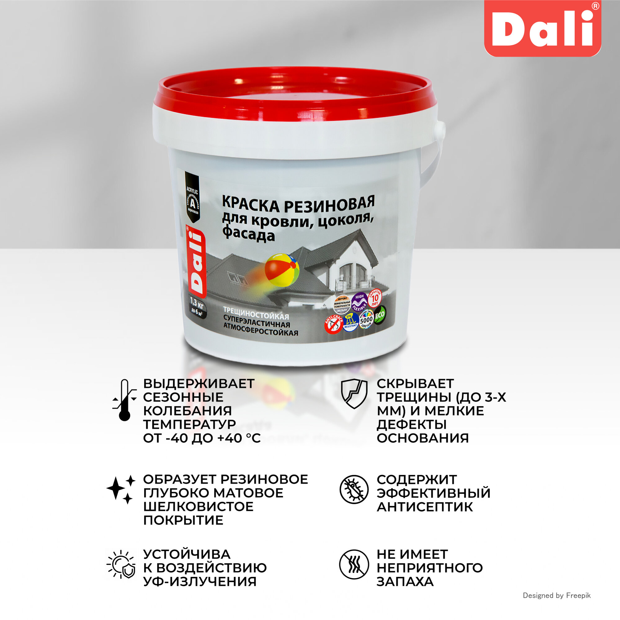 Краска Резиновая Dali 6кг Белый для Кровли, Цоколя, Фасада Суперэластичная / Дали Резиновая.