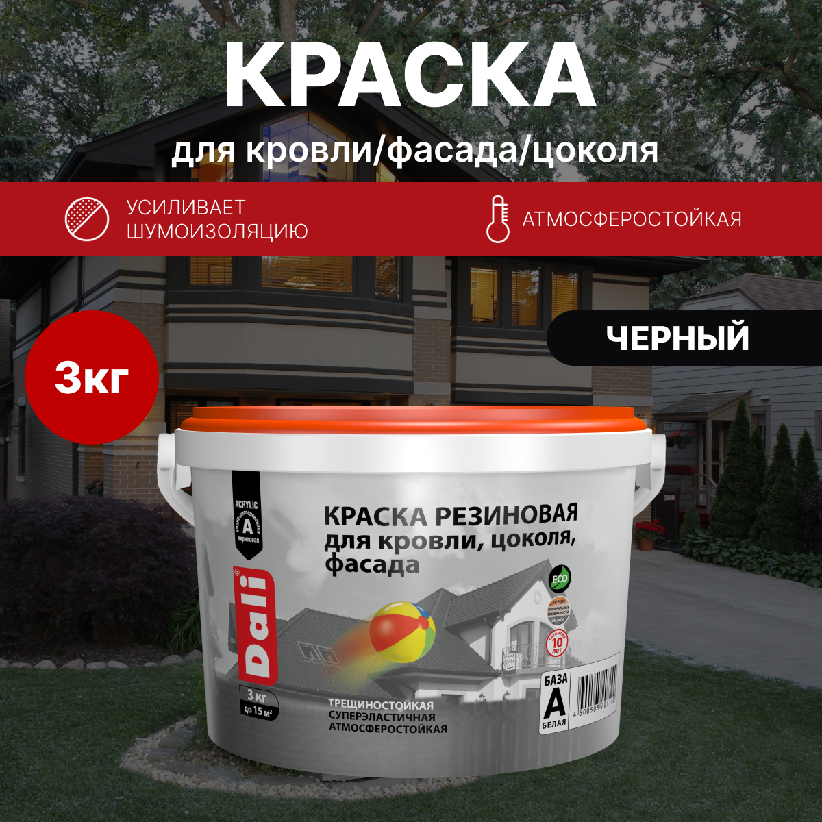 Краска Резиновая Dali 6кг Черный для Кровли, Цоколя, Фасада Суперэластичная / Дали Резиновая.
