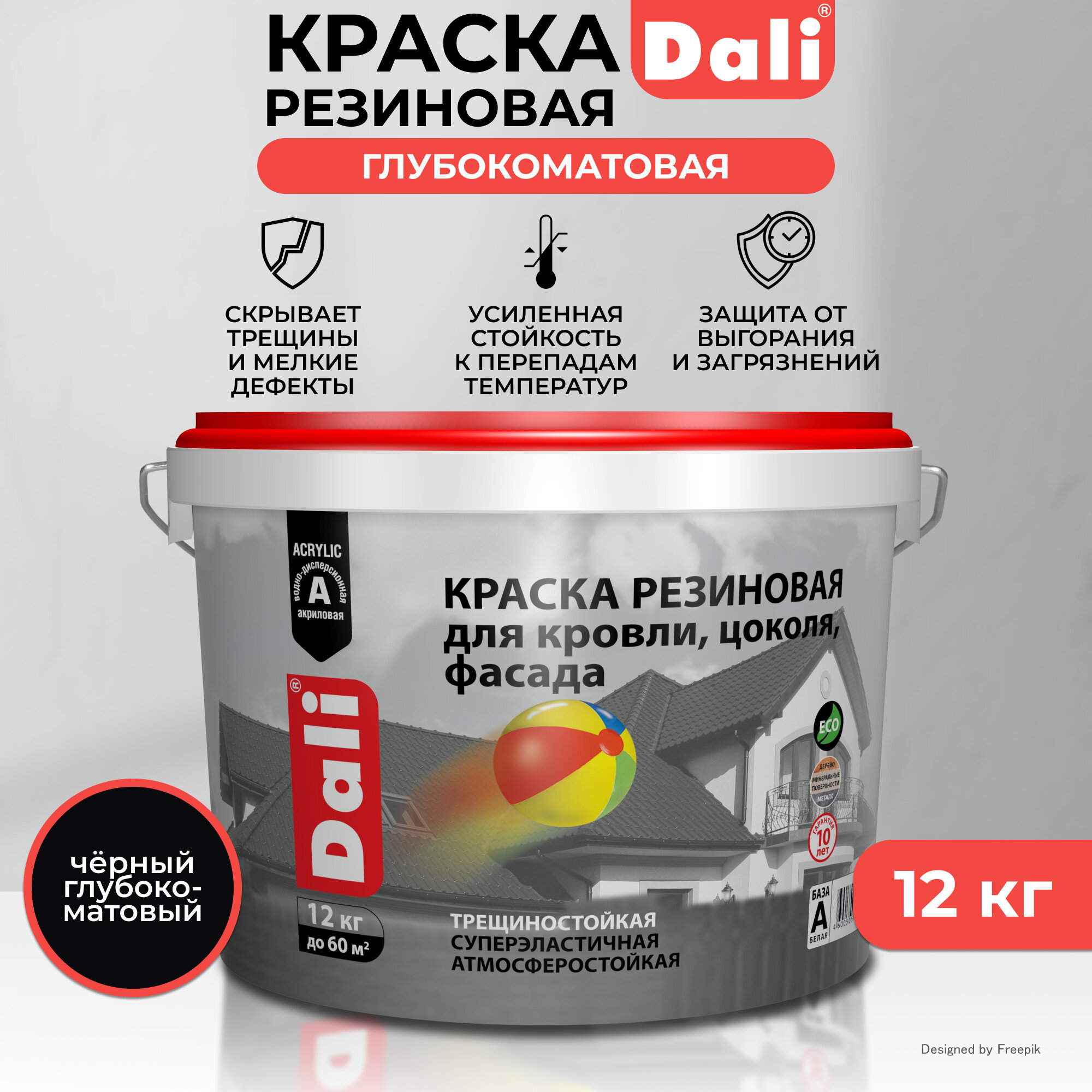 Краска Резиновая Dali 6кг Черный для Кровли, Цоколя, Фасада Суперэластичная / Дали Резиновая.