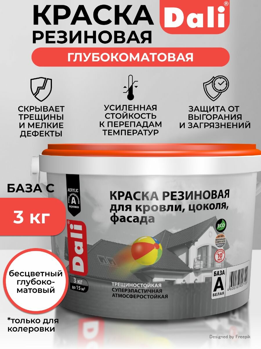 Dali / Дали краска резиновая трещиностойкая акриловая белая, база А 6 кг