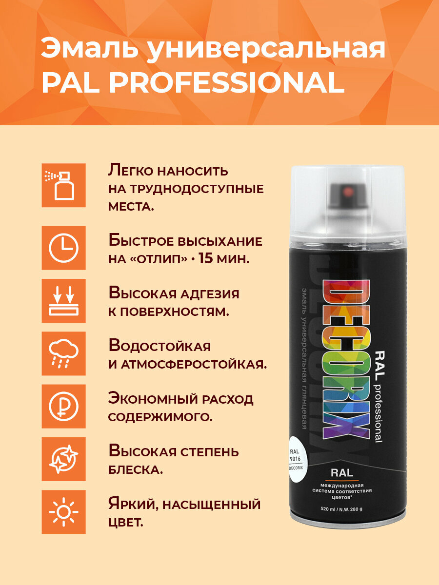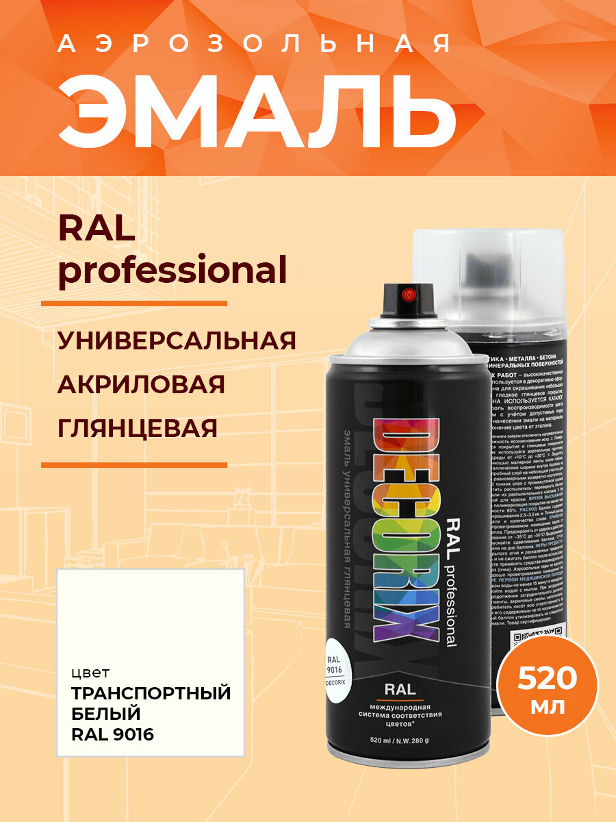 Эмаль акриловая универсальная Decorix RAL Professional (520мл) RAL 9016 (0138-9016 DX)