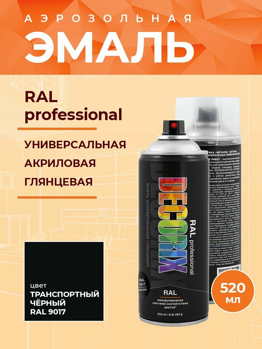 Эмаль акриловая универсальная Decorix RAL Professional (520мл) RAL 9005 глянцевый (0138-9005 DX)