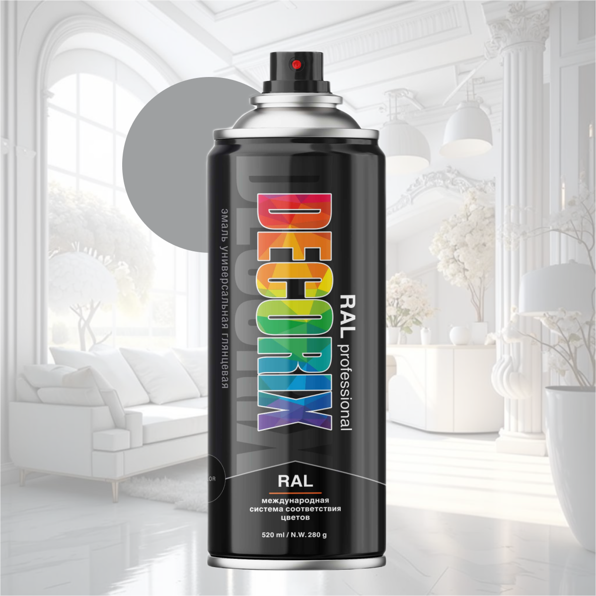 Универсальная высокопрочная эмаль RAL DECORIX 520 мл 400 грамм Цвет RAL: RAL 7040 Серое окно