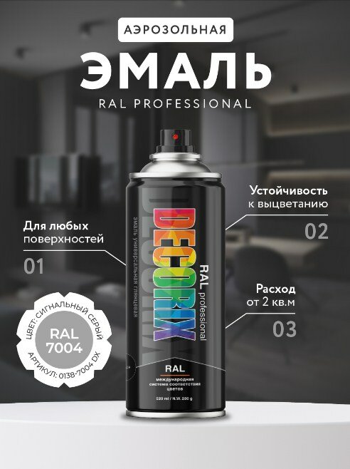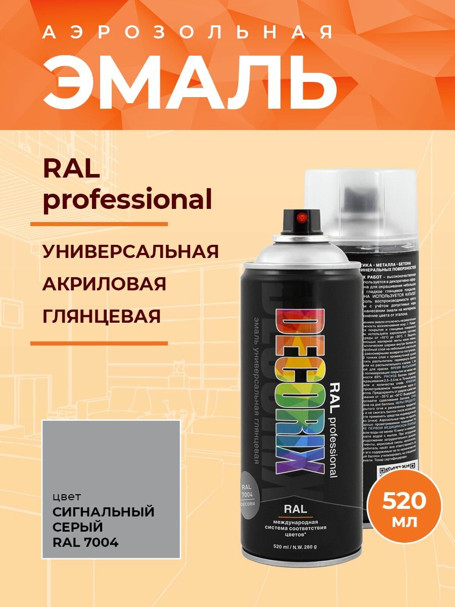 Эмаль акриловая универсальная Decorix RAL Professional (520мл) RAL 7004 (0138-7004 DX)