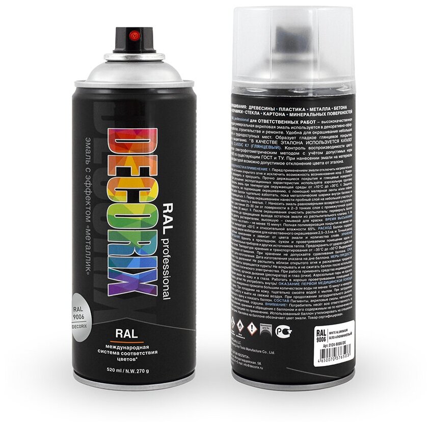 Универсальная высокопрочная эмаль RAL DECORIX 520 мл 400 грамм Цвет RAL: RAL 9006 Бело-алюминиевый