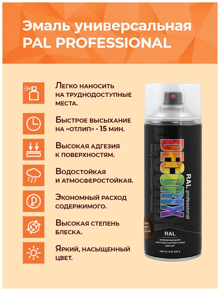 Аэрозольная краска RAL professional DECORIX 520 мл глянцевая, цвет RAL 8011 Орехово-коричневый