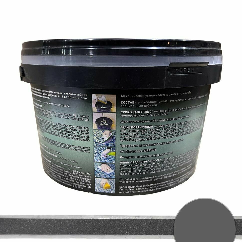 Затирка глянцевая для швов плитки эпоксидная серый 0,8 л двухкомпонентная