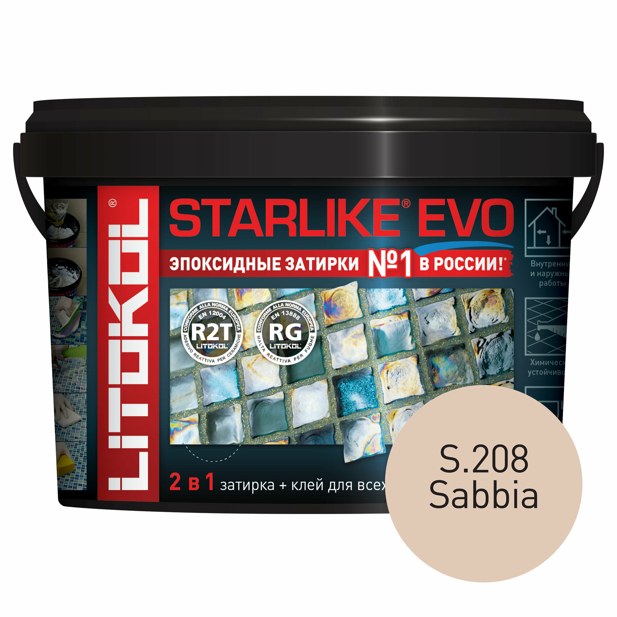 Купить Затирка для плитки двухкомпонентная на эпоксидной основе Litokol Starlike EVO (2,5кг) S.208 sabbia