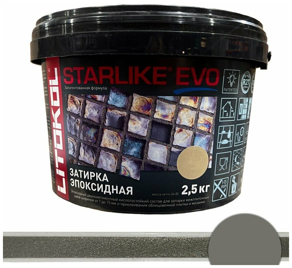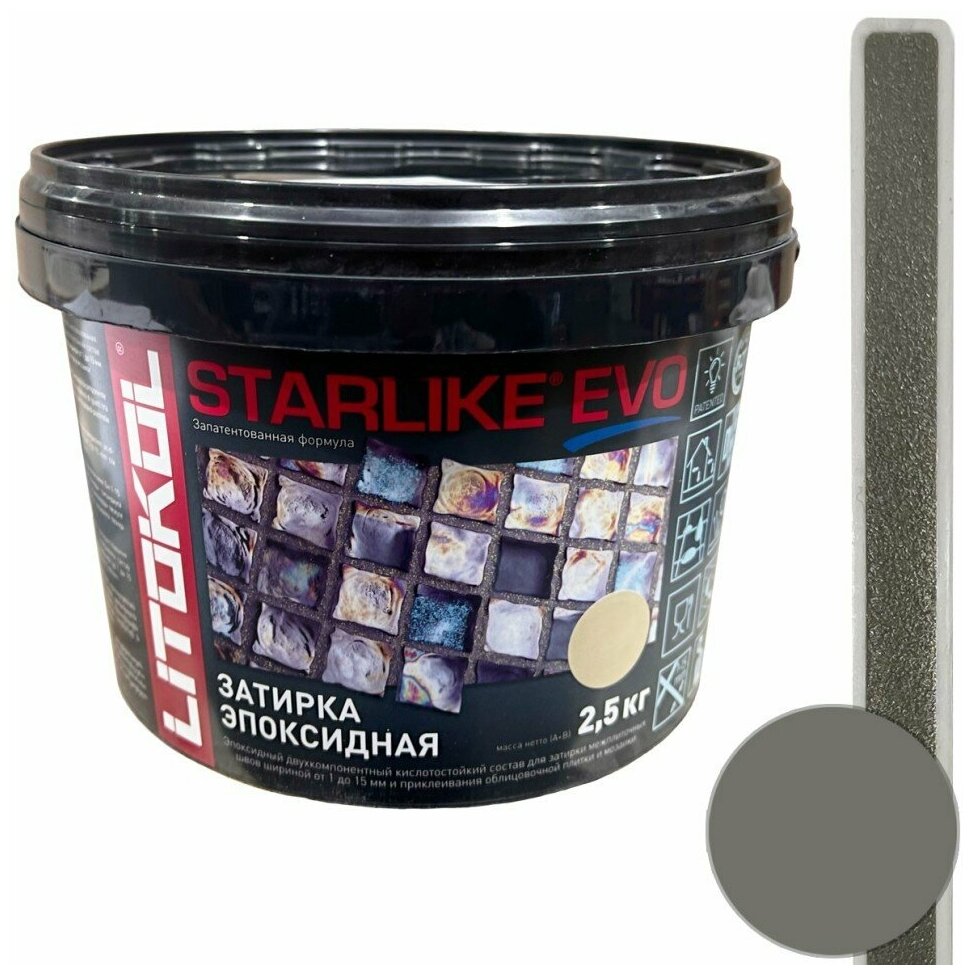 Купить Затирка для плитки двухкомпонентная на эпоксидной основе Litokol Starlike EVO (2,5кг) S.125 grigio cemento