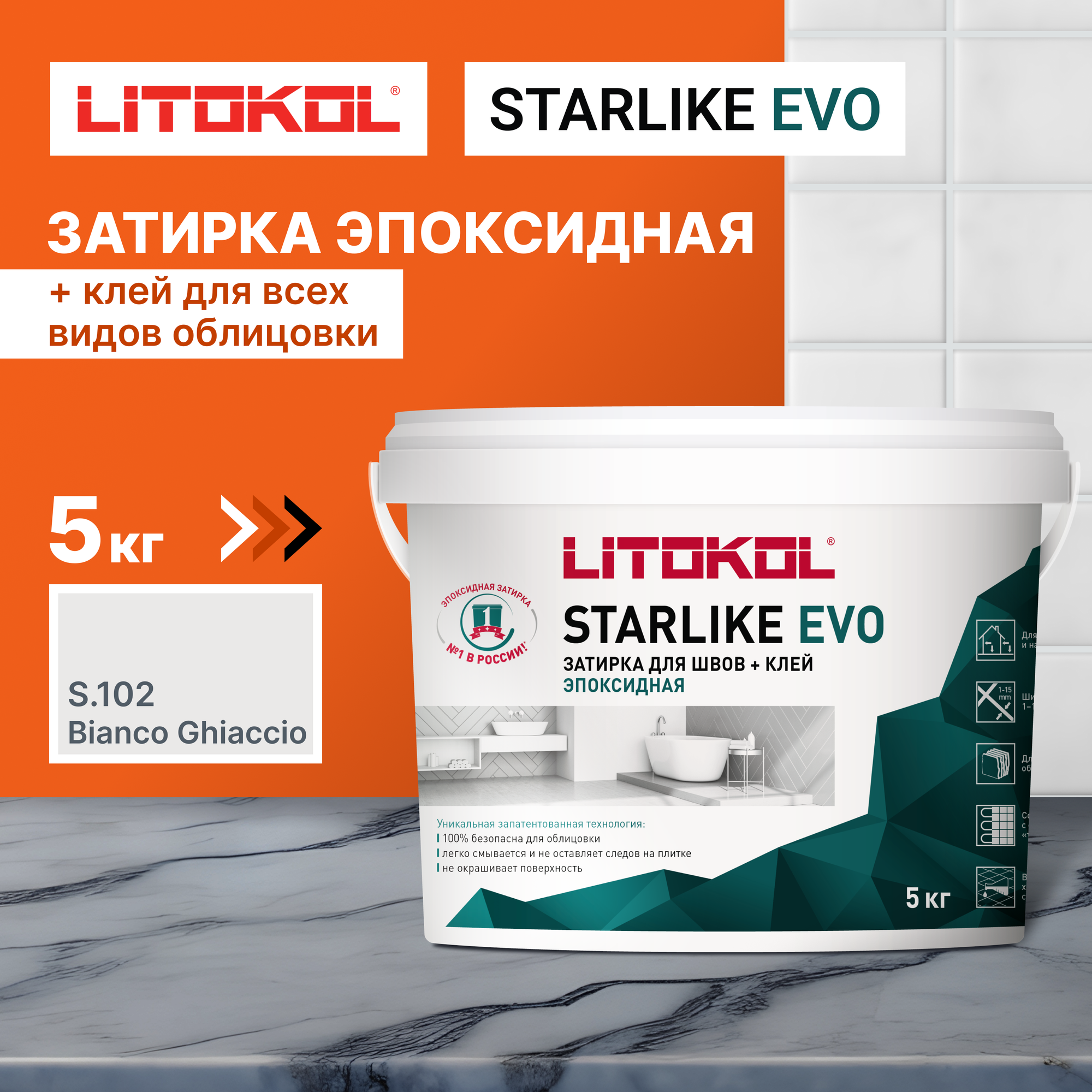 СохранитьЗатирка эпоксидная двухкомпонентная Litokol Starlike Evo S.102, Bianco Ghiaccio, 5 кг интересное: