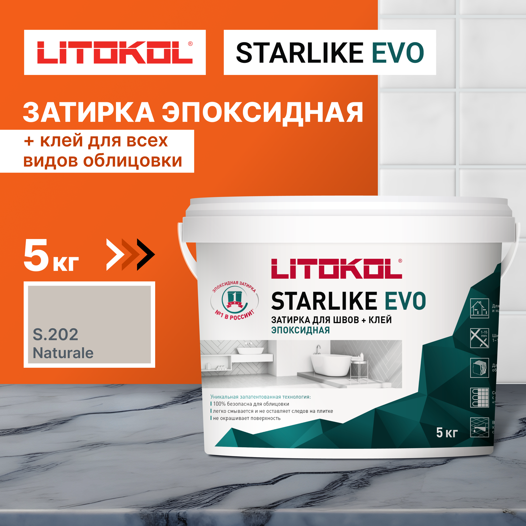 Купить Затирка для плитки двухкомпонентная на эпоксидной основе Litokol Starlike EVO (5кг) S.202 naturale