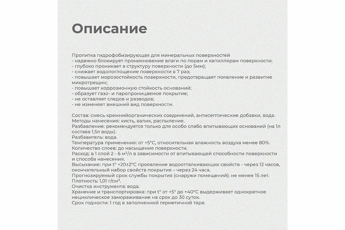 | Плюсы: | быстро впитывается в камень/кирпич. |