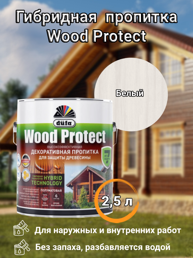 Dufa Wood Protect / Дюфа Вуд Протект Пропитка декоративная для защиты древесины белый 2,5 л