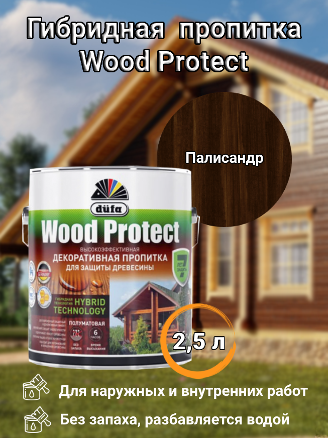 Dufa Wood Protect / Дюфа Вуд Протект Пропитка декоративная для защиты древесины палисандр 2,5л