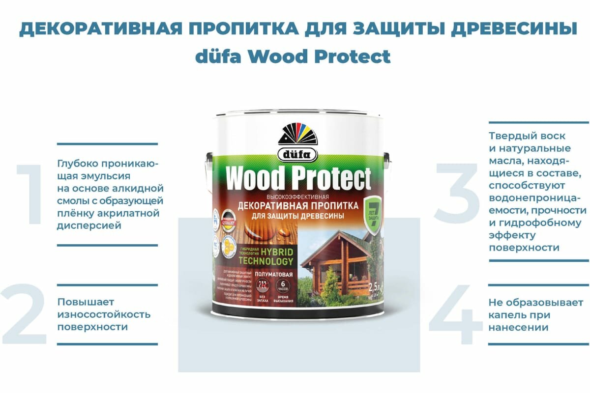 Dufa Wood Protect / Дюфа Вуд Протект Пропитка декоративная для защиты древесины бесцветный 2,5л