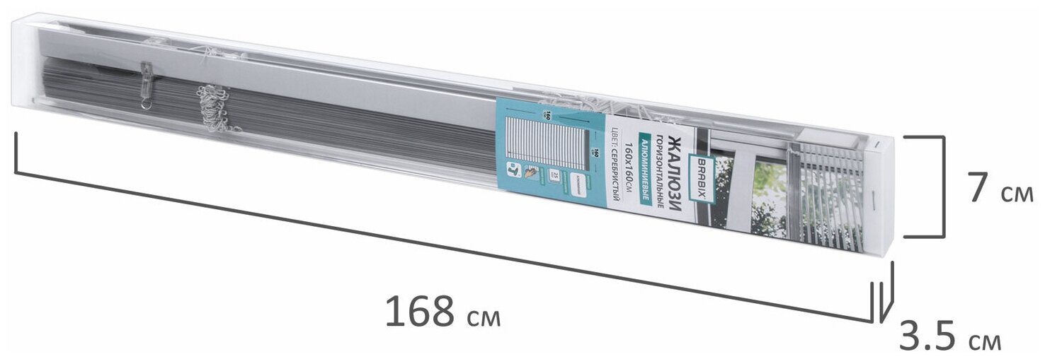 Жалюзи горизонтальные BRABIX 70х160 см, алюминий, цвет серебристый, 606037 (арт. 606037)