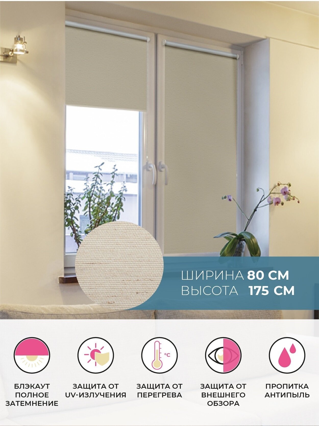 СохранитьШтора рулонная блэкаут Натур 80х175 см, песочный интересное:
