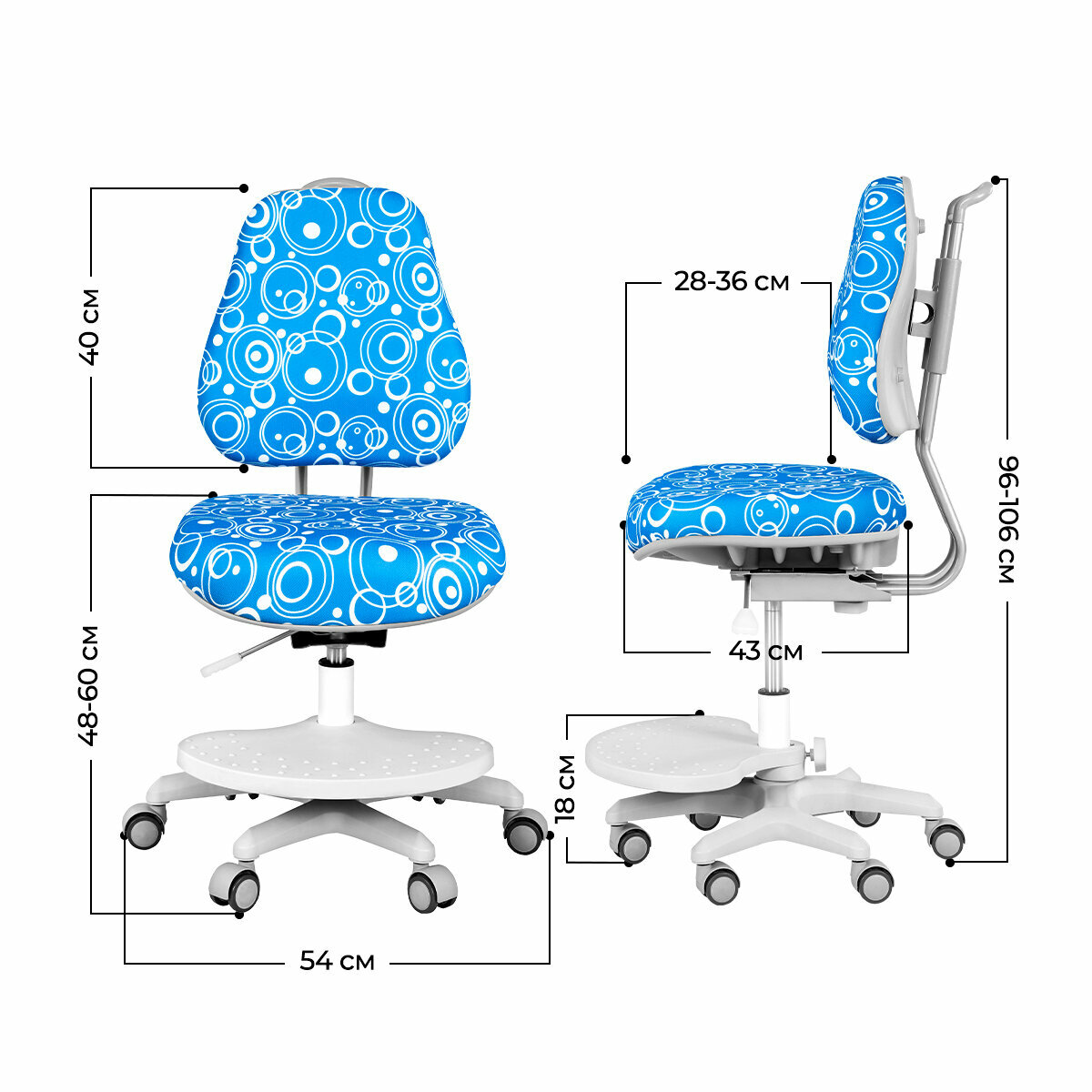 | Дополнительная информация | рекомендуемый рост ребенка от 110 до 175 см, рекомендуемый возраст от 5 лет, автоматическая блокировка колес от 20 кг, удобная ручка для перемещения кресла по комнате, ортопедическая спинка |