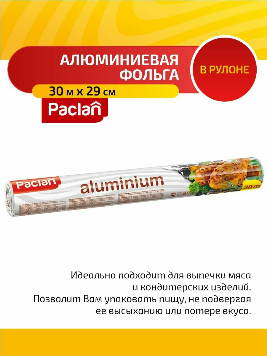 Фольга пищевая алюминиевая Paclan, 29см х 20м, в рулоне, 1шт. (401127)
