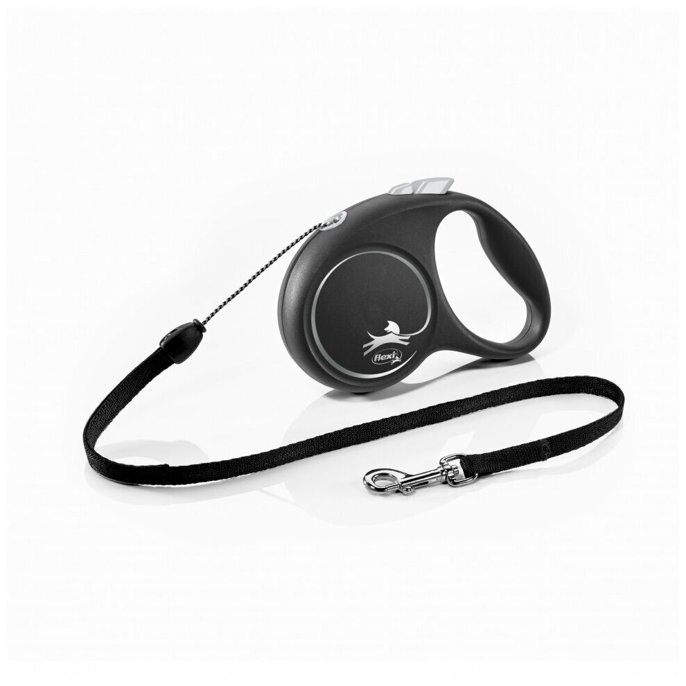 Flexi Black Design cord S поводок-рулетка для собак, черная 5 м, до 12 кг