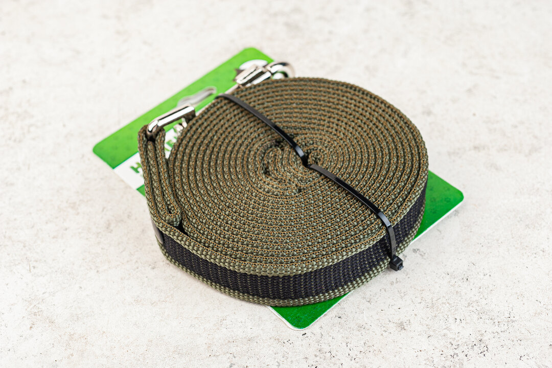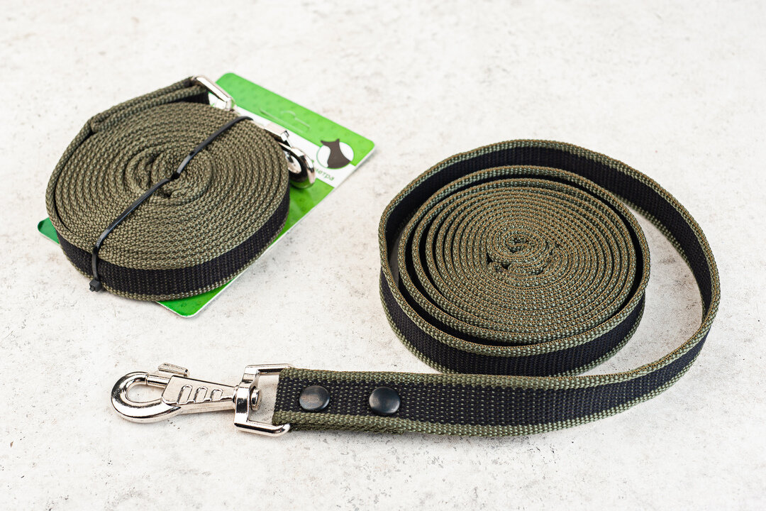 | Отзыв: | Поводок брезент, плотный, зелёный, с чёрной полосой, вся фурнитура на месте. Длина 5 м. |