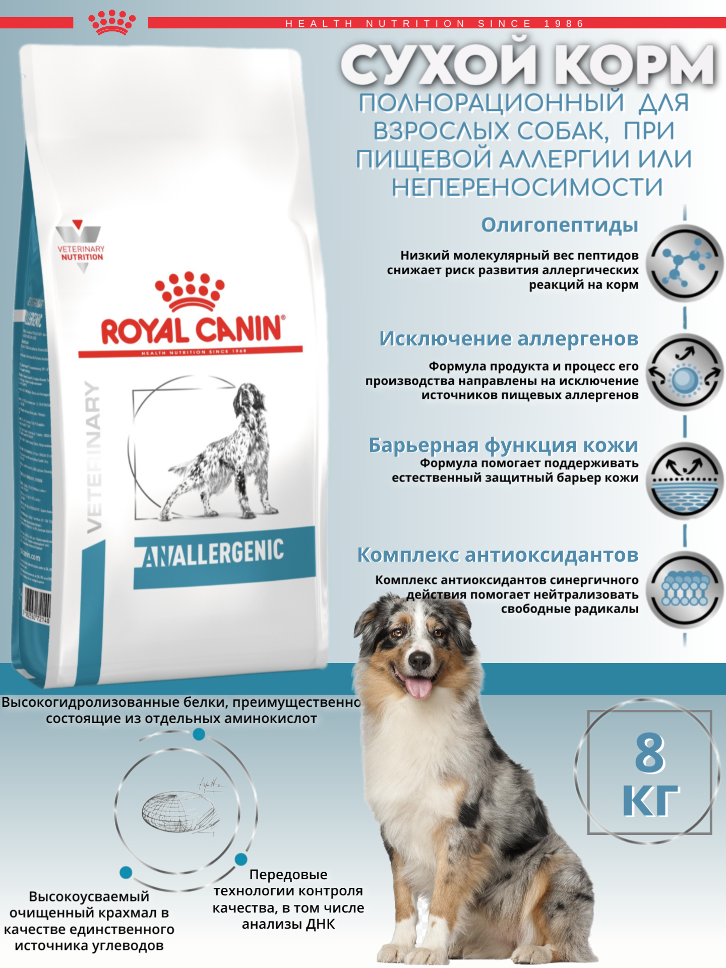 Сухой корм для собак Royal Canin Anallergenic AN18, при пищевой аллергии 8 кг интересное: