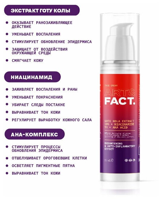 СохранитьART&FACT. / Восстанавливающий и обновляющий крем для ухода за кожей лица с готу колой и ниацинамидом интересное: