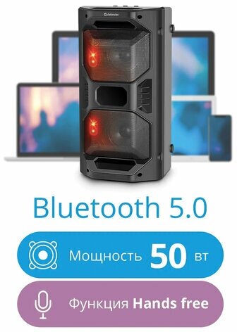Колонка портативная DEFENDER Rage, 2.0, 50 Вт, Bluetooth, FM-тюнер, microSD, чёрная, 65109 интересное: