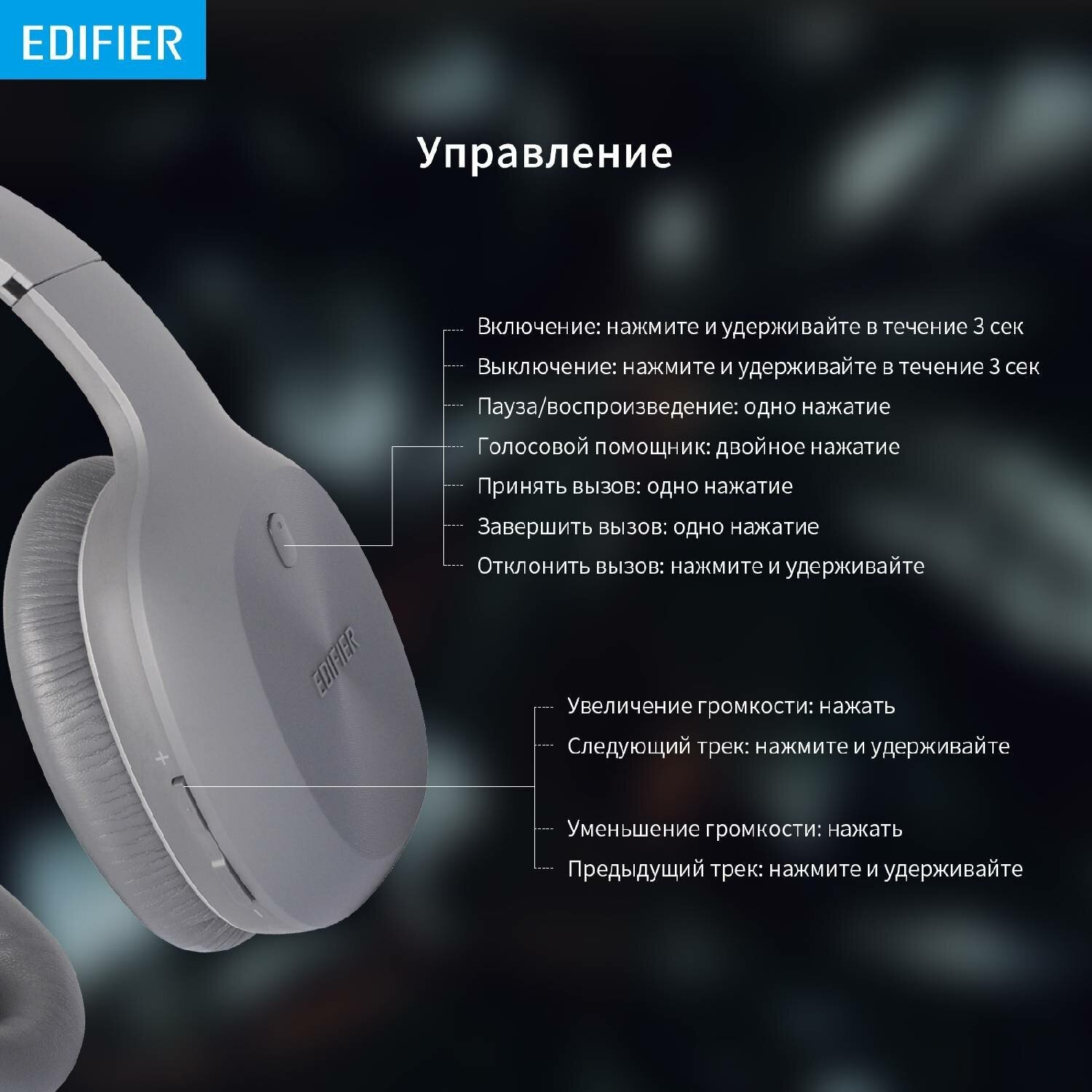 СохранитьГарнитура Edifier W600BT, 3.5 мм/Bluetooth, накладные, серый интересное: