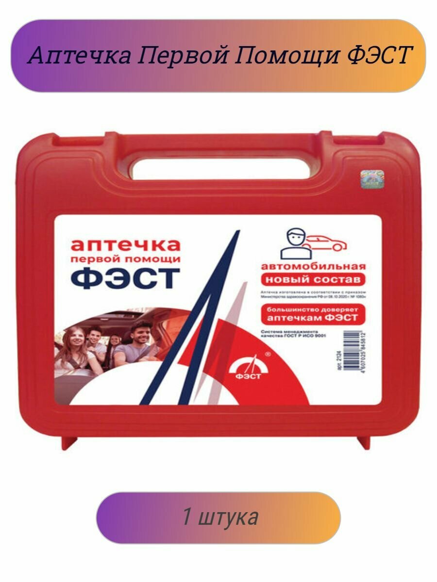 Аптечка первой помощи автомобильная ФЭСТ, футляр полистирол, состав - по приказу № 1080н, 2124 интересное: