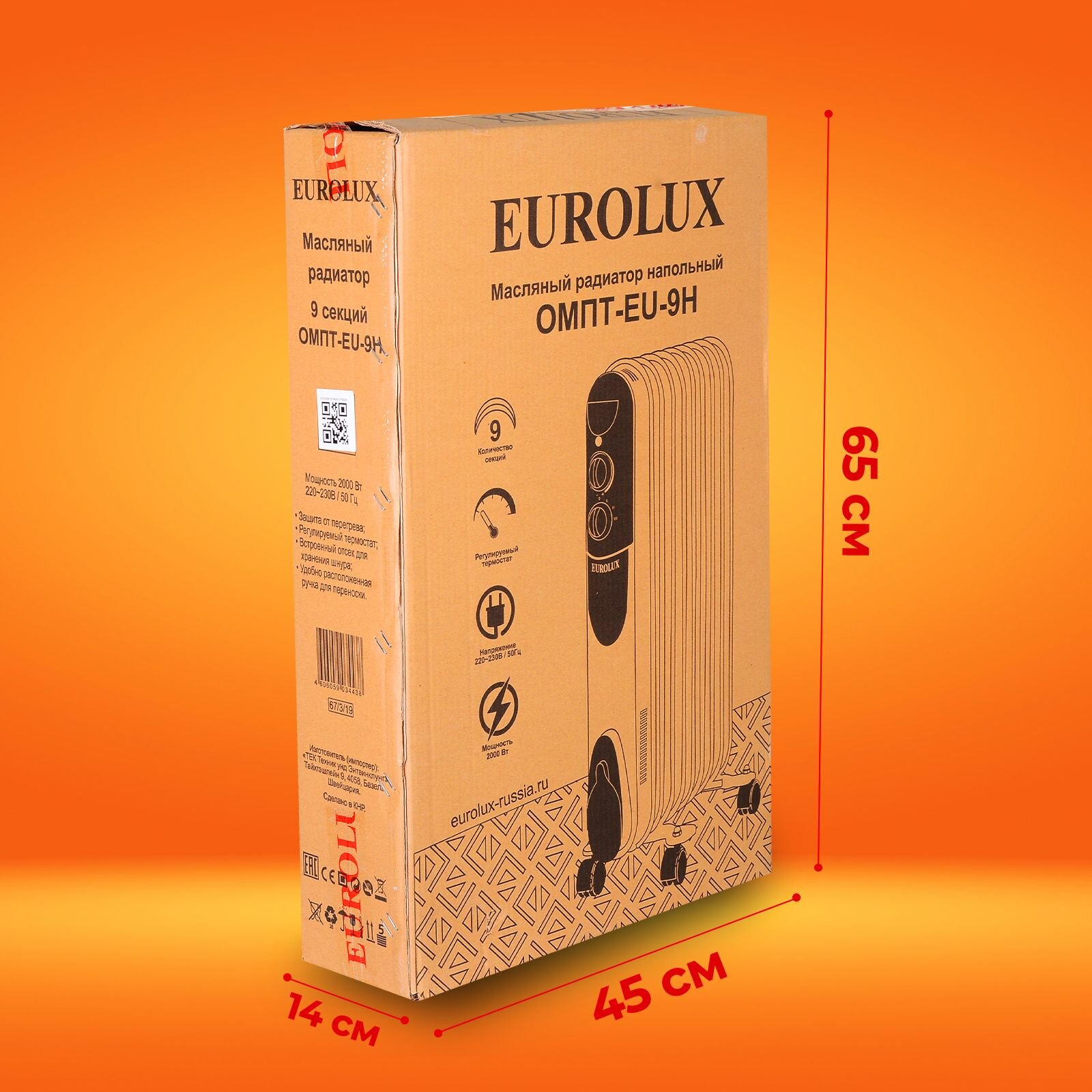 Масляный радиатор Eurolux ОМПТ-EU-9Н, 67/3/19