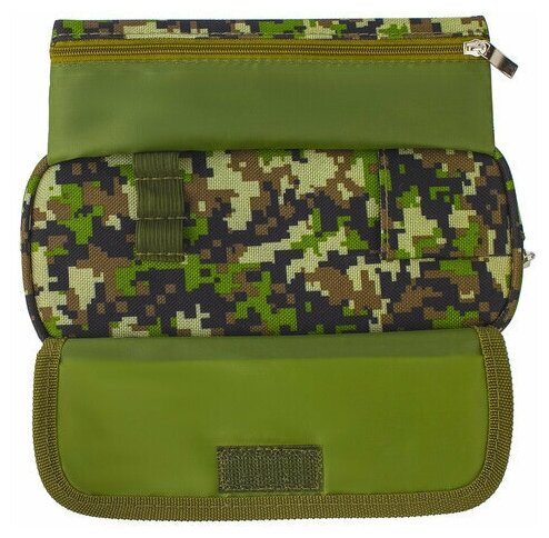 Пенал школьный мягкий Brauberg "Military", органайзер, зеленый, 21х5х9см (228990)