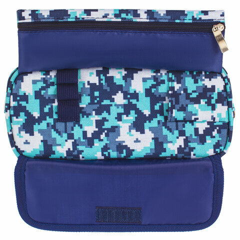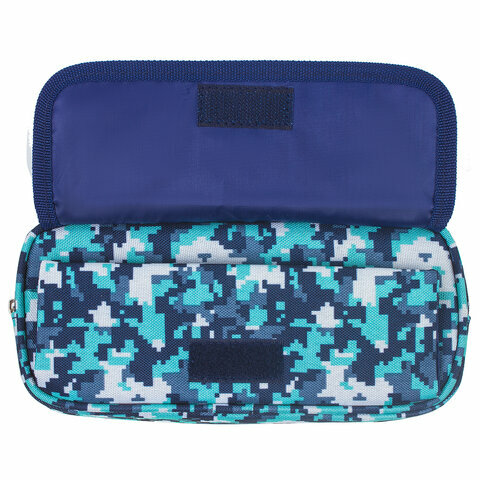 Пенал BRAUBERG для мальчиков, 2 отделения, полиэстер, Military, синий, 21х5х9 см
